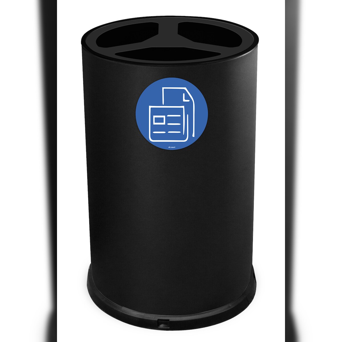 Stil Casa Abfalleimer für die Mülltrennung, Ø 45 x h. 72 cm, lackierter Stahl, drei Fächer, magnetisches Piktogramm, 100 Liter, schwarz.