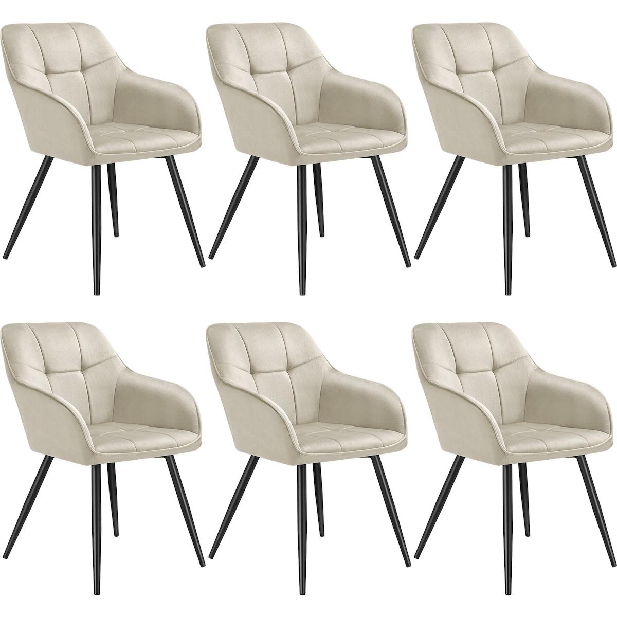 TECTAKE Stuhl Marilyn, Samtoptik, gesteppt 6er Setcreme/schwarz