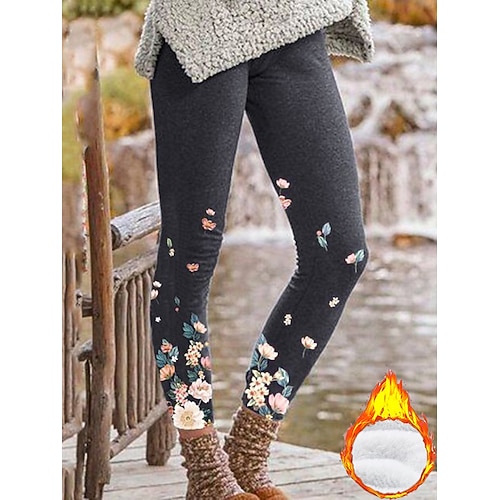 Per donna Pantaloni in Pile Leggings Vacanza Vintage Stile Etnico Lunghezza intera Vita Alta Floreale Grafico Stampato Calore Termico Comodo Confortevole Elasticizzato All'aperto Casual Casuale Nero