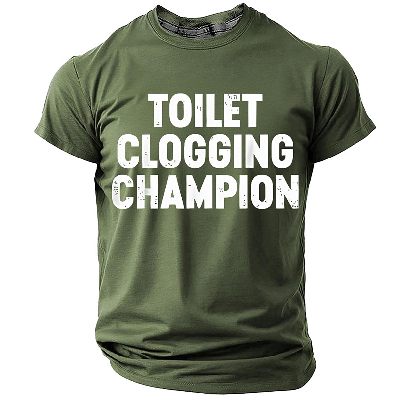 Toilet Clogging Champion Shirt Funny Poop Joke Graphic Tee Distressed Novelty Sarcastic Mens Bathroom Humor Top Clothing Apparel S M L XL XXL XXXL
