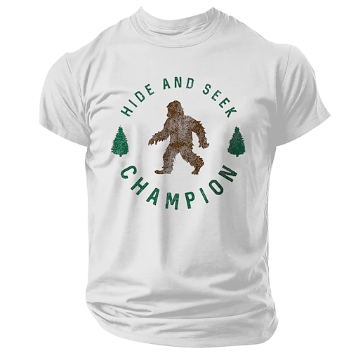 Männer Grafik T-Shirt Verstecken Champion Bigfoot Lustiger Sasquatch Outdoor Kurzarm