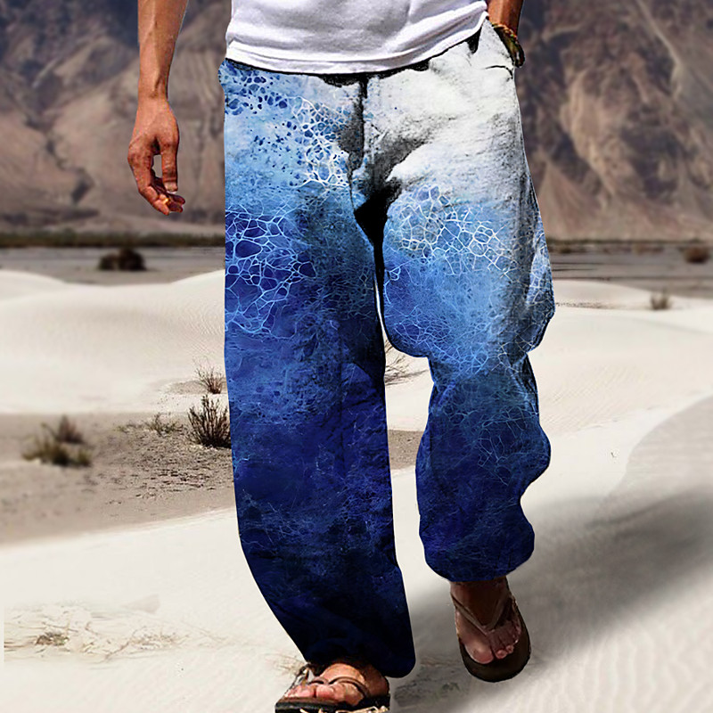 Men's Trousers Summer Pants Beach Pants Drawstring Elastic Waist 3D Print Gradient Graphic Prints Comfort Casual Daily Holiday Streetwear Hawaiian Blue Green