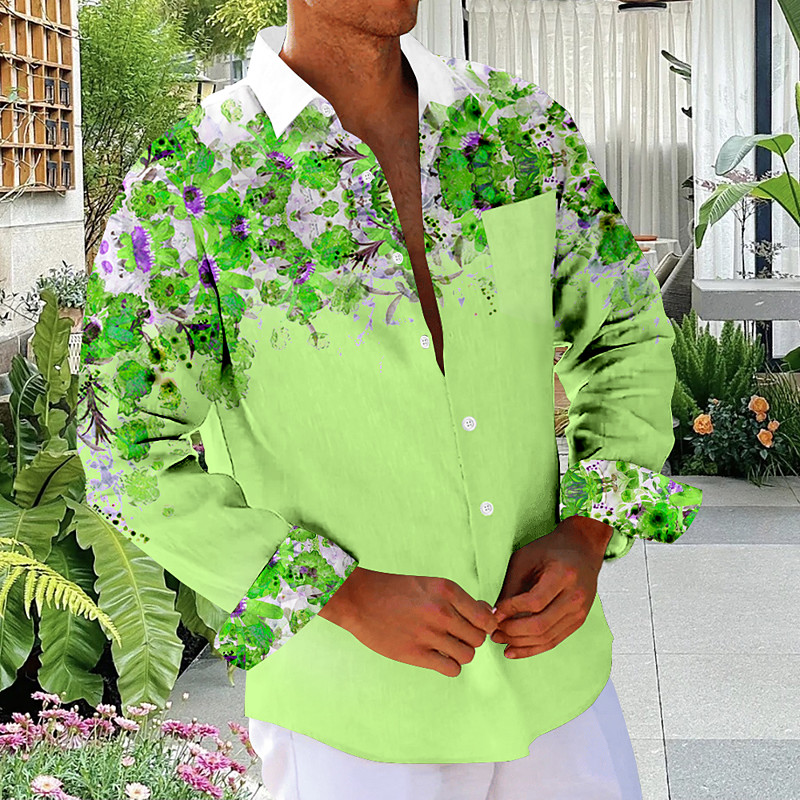 Men's Floral Beach Shirt Button Up Shirt Long Sleeve Hawaiian Vacation Daily Fall Winter Spring Summer Collared Shirts 3D Print Blue Fuchsia Green