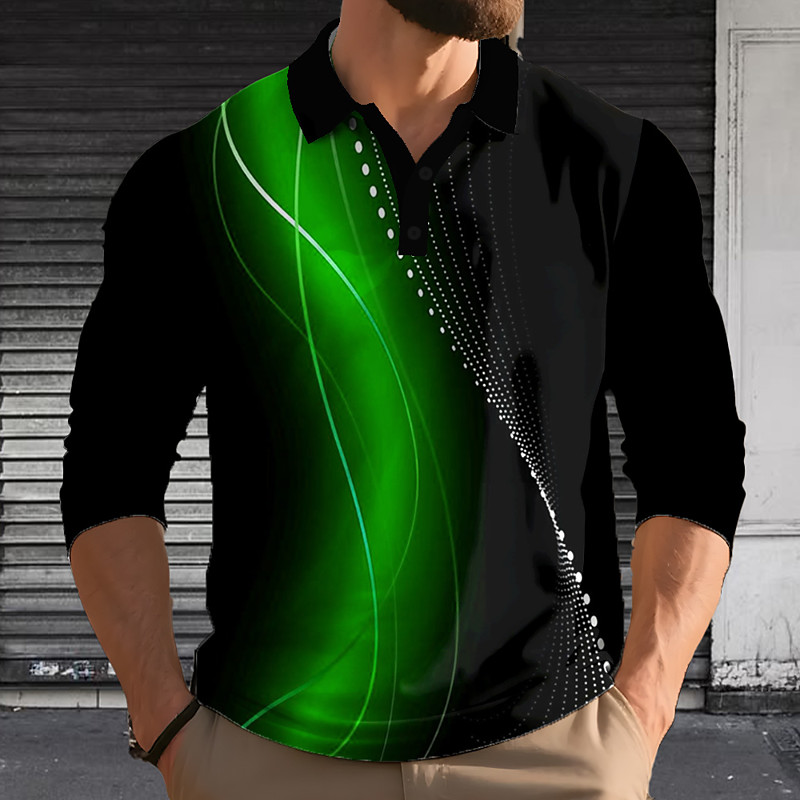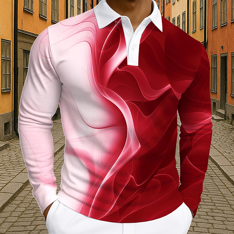 Men's Geometic Line Polo Long Sleeve Polo Shirts Lapel Business Casual Athleisure Daily Wear 3D Print Buttons Spring Fall Winter Red Blue Green
