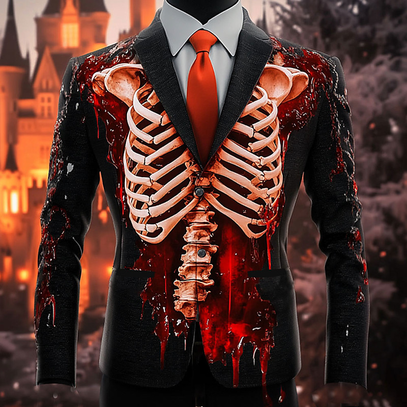 Halloween Men's Skeleton Blazer Jacket Casual Dark Festival 3D Print Spring Fall Winter Notch Long Sleeve Red Orange Green