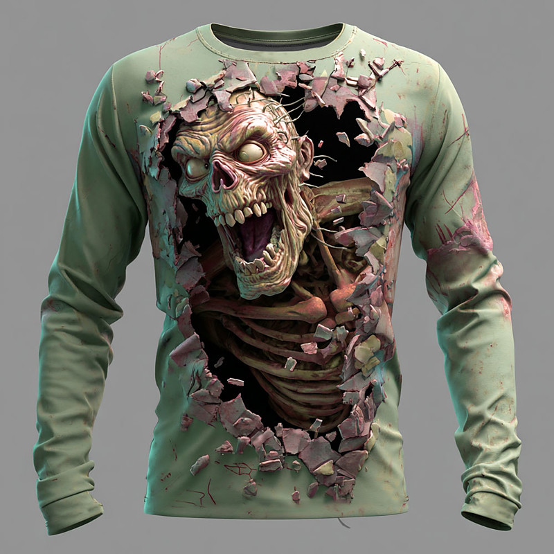 Halloween Men's Zombies 3D T Shirt Long Sleeve T shirt 3D Print Crew Neck Shirt Fashion Exaggerated Street Casual Daily Green 1# Green 2# Green 3# Summer Spring Fall Clothing Apparel S M L XL XXL XXXL