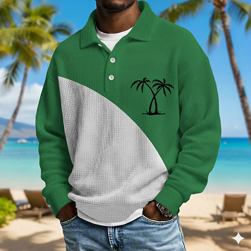 Men's Palm Tree Waffle Polo Shirts Long Sleeve Polo Shirts Lapel Hawaiian Athleisure Daily Wear Vacation Wear 3D Print Spring Fall Winter Blue Yellow Purple