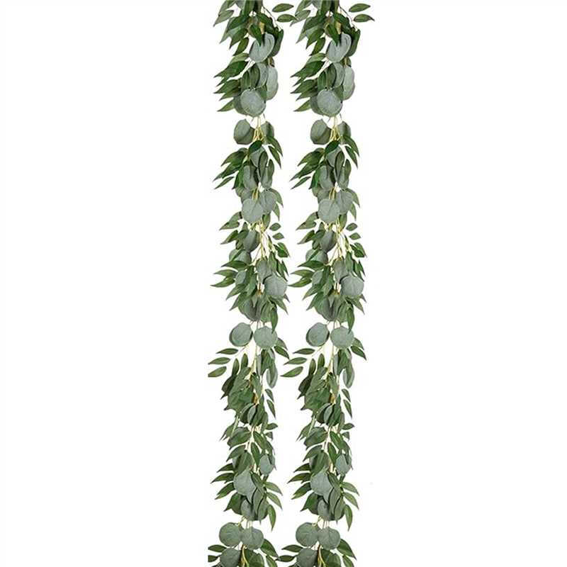 Wei‘s Moment 2Pcs 6.5Ft Artificial Eucalyptus Garland with Willow Leaves Fake Hanging Greenery Vines Table Runner Garland for Wedding Backdrop Arch Wall Decor
