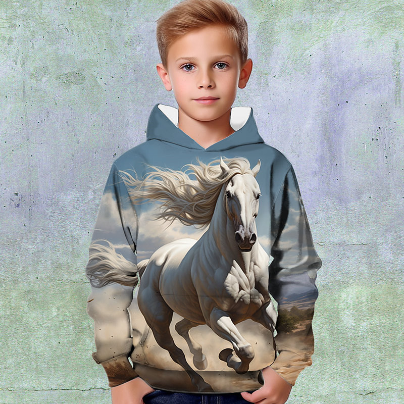 Boys 3D Animal Horse Hoodie Long Sleeve 3D Print Fall Winter Active Sports Fashion Kids 3-13 Years Outdoor Daily Indoor Regular Fit