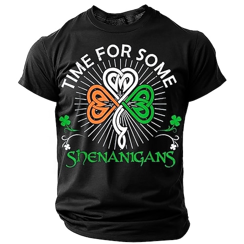 San Patrizio Per uomo Trifoglio Irlandese fortunato Maglietta Manica Corta maglietta Stampa 3D Girocollo Camicia Designer Casual Feste Ferie Club Nero Grigio scuro Estate Primavera Abbigliamento S M