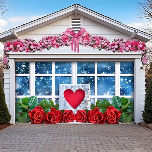 San Valentino Copertura per porta del garage Grande appeso Finestra Cuori Vintage Romantico 3D Da serata All'aperto Sfondi di ripresa Porta d'ingresso Arredamento per la casa
