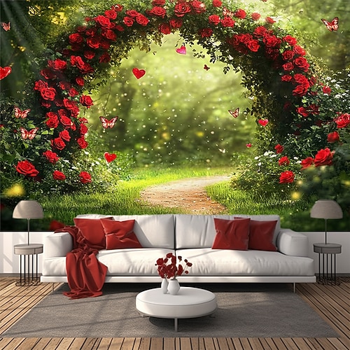 San Valentino arazzo Striscioni Coperta Rose Amore Cuori Carino Romantico 3D Da serata Soggiorno Sfondi di ripresa Decorazione per proposta di matrimonio Arredamento per la casa