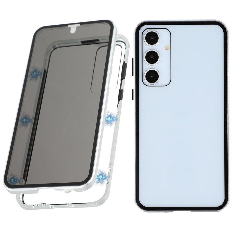 Mobilskal till Samsung Galaxy A55 5G Härdat Glas Metall Magnetlås - Silver