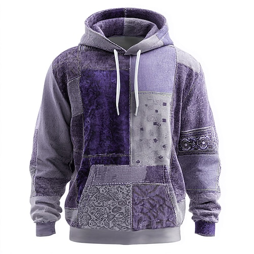 Per uomo Geometrico Plaid Felpa con Cappuccio Felpa Moda Quotidiano Manica Lunga Girocollo Casa Feste Abbigliamento casual alla moda Blu Viola Marrone Verde Coulisse Autunno Inverno progettista S M L