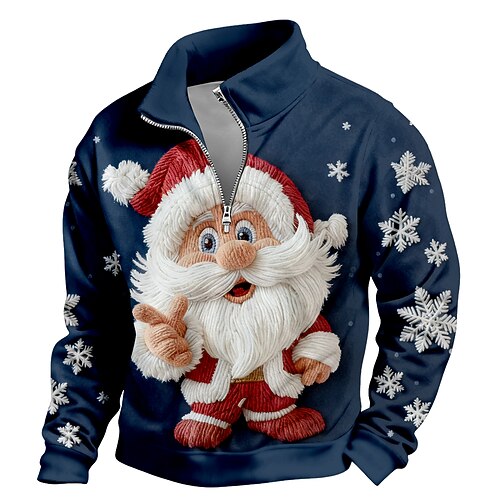Natale Per uomo Babbo Natale Felpa Cool Quotidiano Elegante Collo alla coreana All'aperto Casa Regalo Blu chiaro Rosso Verde Blu scuro Cerniera Autunno Inverno progettista S M L XL XXL XXXL