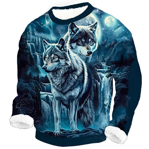 Per uomo Lupo Pile Felpa Quotidiano Casual 3D Girocollo Casa Feste Regalo Abbigliamento casual alla moda Blu Nero Blu scuro Stampa 3D Autunno Inverno progettista S M L XL XXL XXXL