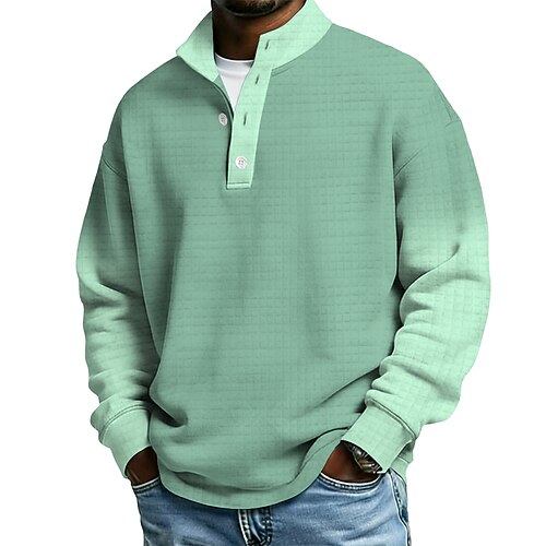 Per uomo Blocco di colori Gradiente di Colore Nido d'ape Felpa Moda Quotidiano Casual Collo Alto Casa All'aperto Abbigliamento casual alla moda Ufficio Blu Verde Blu scuro Grigio Bottoni Autunno