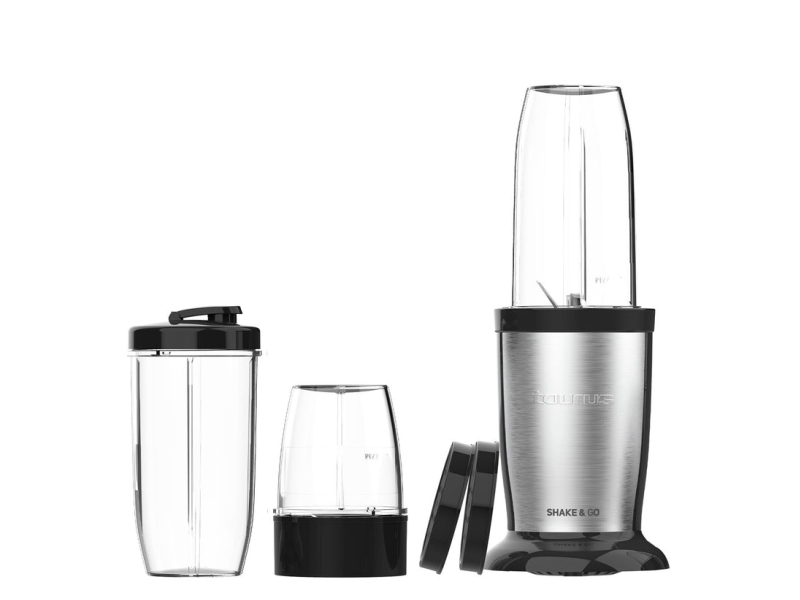 Taurus Shake & Go, Kannettava tehosekoitin, 0,5 L, Pulssitoiminto, Jään murskaus, 800 W, Musta, Ruostumaton teräs, Läpinäkyvä