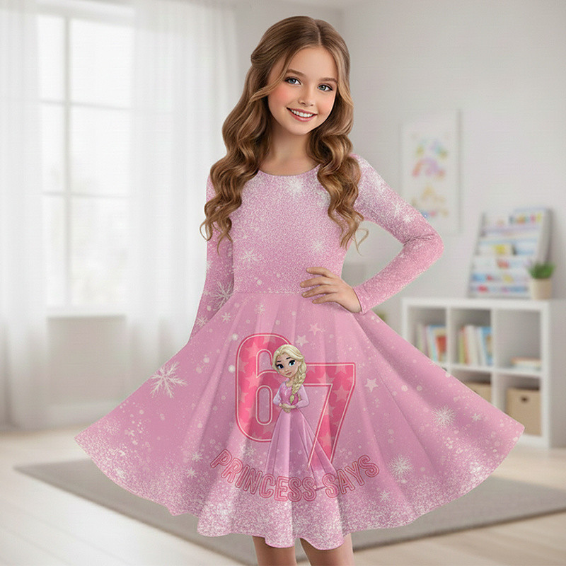 Girls' 3D Graphic Cartoon 67 Dress Long Sleeve 3D Print Spring Fall Performance Vacation Party Casual Princess Beautiful Kids 4-12 Years Casual Dress A Line Dress Knee-length Regular Fit