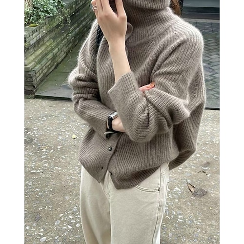 Per donna Felpa Maglione Elegante Moda Carino Tinta unica Scollo a V Bottoni Lavorato a maglia Manica Lunga Top Regolari Maglia All'aperto Casa Quotidiano Blu Rosa Autunno Inverno