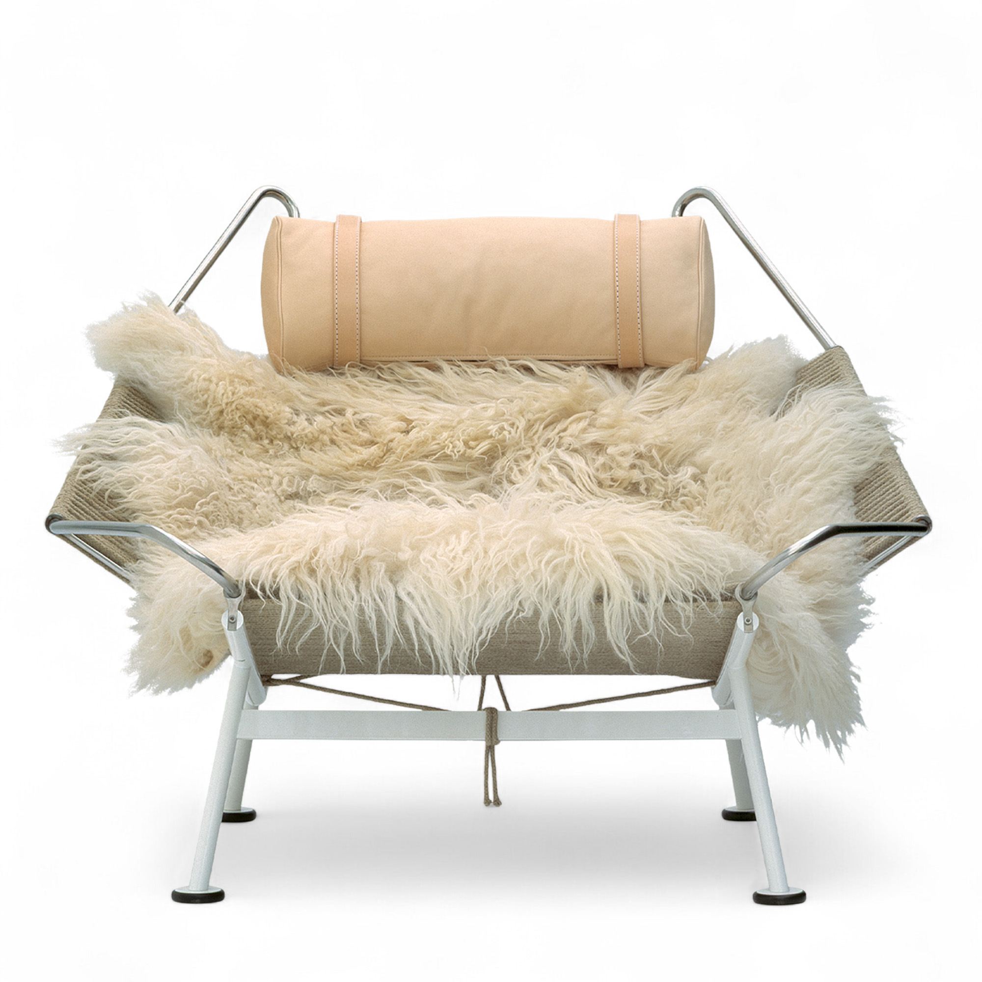 PP Möbler - PP225 Flag Halyard Chair/ Naturfärgad flagglina/ Underrede: Vit - Fåtöljer - Hans J. Wegner - Beige - Metall