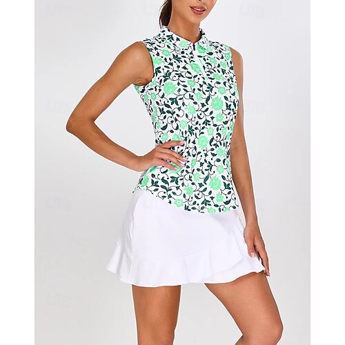 Per donna Trifoglio Maglia da tennis Senza Maniche Stampato UPF50 Asciugatura Rapida Tennis Golf Badminton Collo con zip Maglietta Top Verde Abbigliamento da tennis