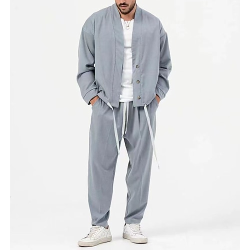 Per uomo 2 pezzi Completo di camicia Set abbinati Maglietta informale Verde Grigio chiaro Grigio Manica lunga Liscio Giornaliero Per uscire Abbigliamento Di tendenza Informale
