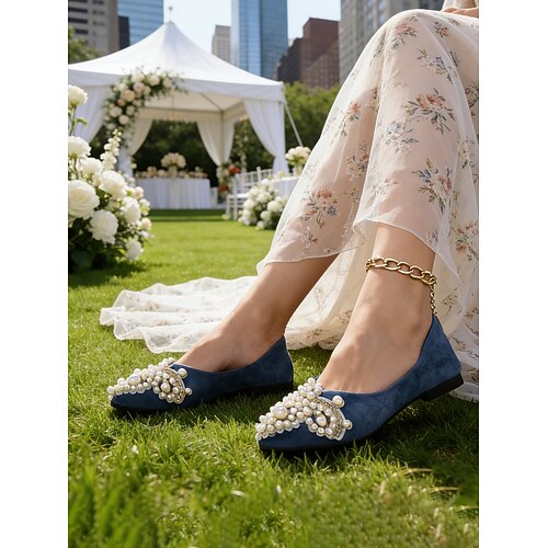 ballerine da donna con punta affilata e decorazioni di perle, eleganti scarpe da sposa slip-on per spose e ospiti, perfette per il giardino all'aperto cerimonie sul prato