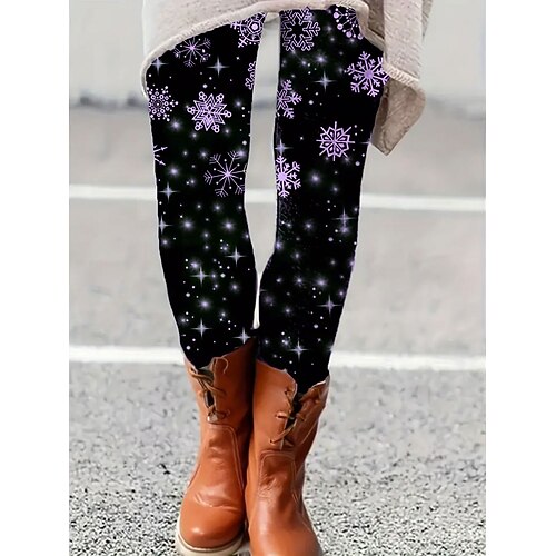 Per donna Leggings Vacanza Vintage Moda Lunghezza intera Vita Alta Grafico Fiocco di neve Stampa Calore Termico Morbido Traspirante Elasticizzato Formale All'aperto Vacanza Bianco Rosa Blu Verde