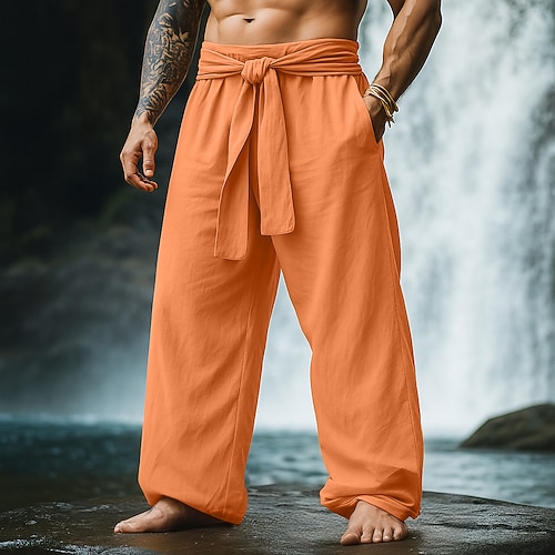 Per uomo Pantaloni cargo Pantaloni di lino Pantaloni estivi Pantaloni da spiaggia A cordoncino Vita elastica Multi tasca Liscio Comfort Traspirante Lunghezza intera Esterno Giornaliero Per eventi