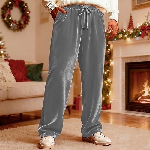Per uomo Pantaloni Pantaloni Larghi Pantaloni casual Pantaloni di Velluto Tasca Gamba Dritta Tinta unica Semplice Comodità Morbido Lunghezza intera All'aperto Casa Quotidiano Vacanza Moda Nero Giallo