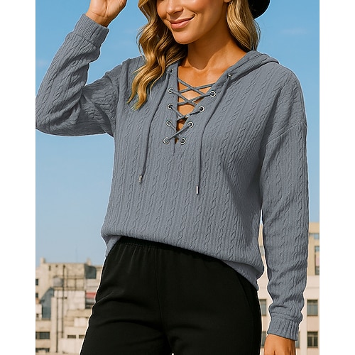 Per donna Felpa casual Felpa con cappuccio Manica Lunga Top Athleisure Autunno Tinta unita Di tendenza All'aperto Viaggio abbigliamento sportivo Abbigliamento sportivo Aalbicocca Nero Borgogna