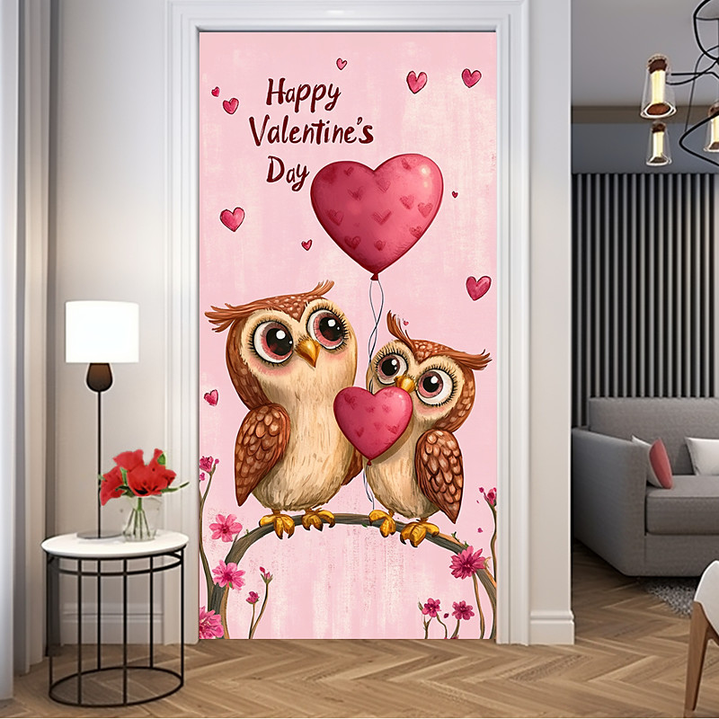 L.T.HOME Valentine's Day Outdoor Decorations Door Covers Door Tapestry Door Curtain Decoration Backdrop Indoor/Outdoor Door Banner for Front Door Farmhouse Owl