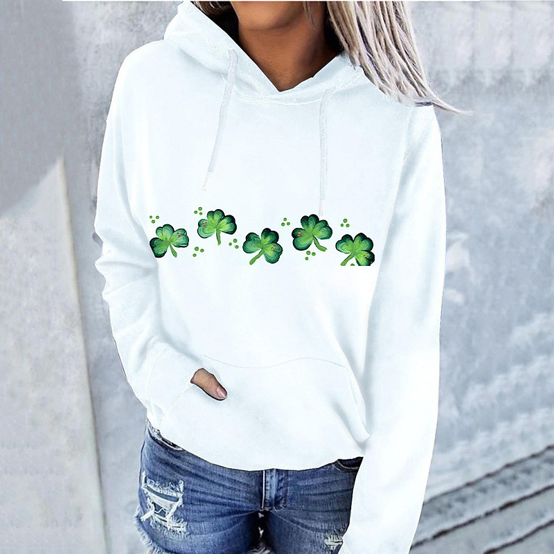 Women's Shamrock Active Sportswear Long Sleeve Hooded Regular Tops St.Patrick's Day Casual Sports Drawstring Print Front Pocket Grass Green Olive Green Light Green Dark Green Green Fall Winter