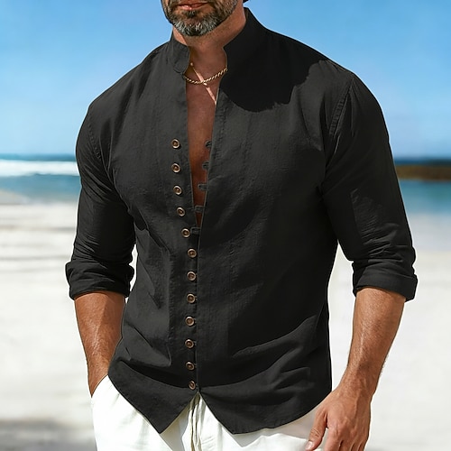 Herren Hemd Leinenhemd Sommerhemd Freizeithemd Knopfhemd Einfach Lässig Täglich Blau Schwarz Weiß Rosa Langarm Mandarinkragen Sommer Frühling Bekleidung Button-Down