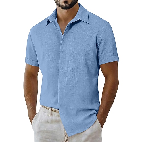 Herren leinenhemd Sommerhemd Strandbekleidung Knopfhemd Feste Farbe Urlaub Curise Schwarz Weiß Hellgrün Rosa Kurzarm Umlegekragen Sommer Bekleidung Button-Down