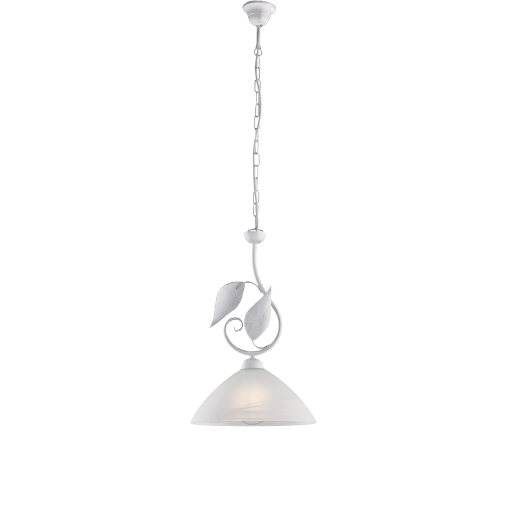 Sospensione Classica 1 Luce Ferro Battuto E Vetro Bianco E Argento