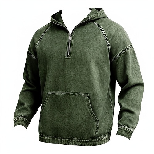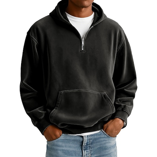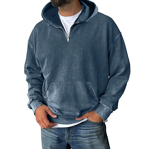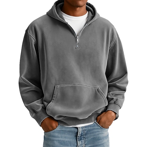 Per uomo Felpa con cappuccio Maglione Felpa con cappuccio e zip corta Blu Nero Verde chiaro Rosa Verde militare Con Cappuccio Semplice Tasca a marsupio Casuale Quotidiano Sport Outdoor Vintage Cool