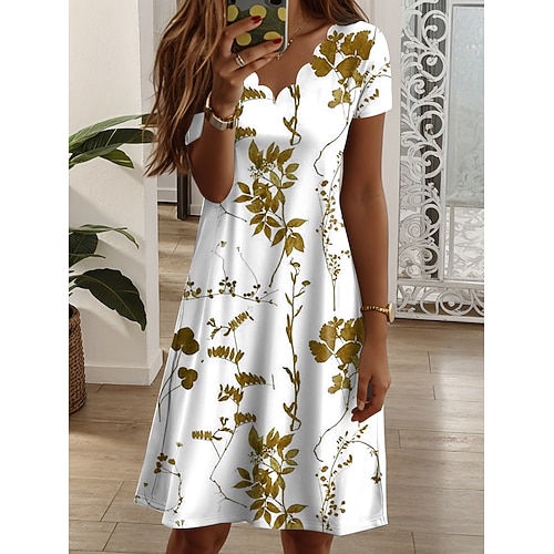 Per donna Mini abito Abito casual Abito a T shirt Abito boho Moda Informale Da mare Giornaliero Standard Floreale A foglia Manica corta Girocollo Blu Marrone Verde Estate