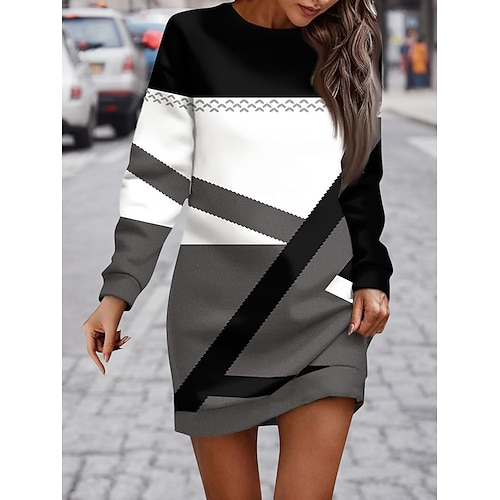 Per donna Mini Abito Vestito Casual Vestito T-Shirt Classico Moderno All'aperto Vacanza Uscire Vestibilità regolare Semplice Manica Lunga Girocollo Nero Bianco Rosso Verde Primavera Autunno
