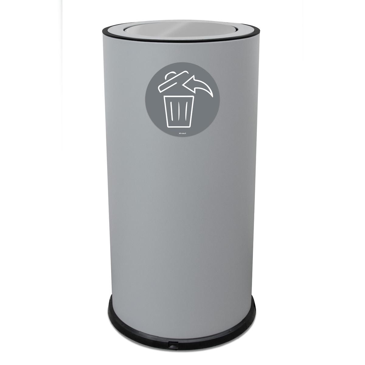 Stil Casa Abfalleimer für die Mülltrennung mit Kippdeckel, Ø 35 x h. 72 cm, lackierter Stahl, magnetisches Piktogramm, 70 Liter, grau.