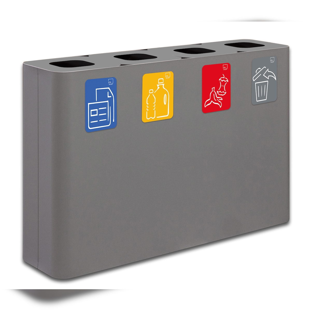 Stil Casa PURE Abfallsammelsystem, lackierter Stahl, 120x30xh. 80 cm, 240 Liter mit vier Fächern zu je 60 Litern, grau.