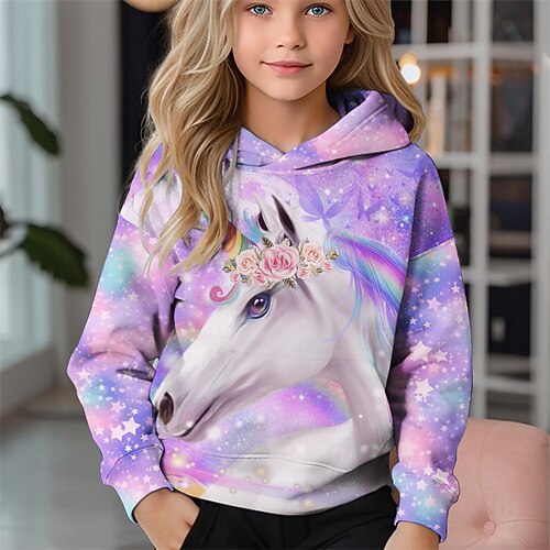Mädchen 3D Einhorn Kapuzensweatshirt Langarm Herbst Winter Mode Niedlich Basic Kinder 4-12 Jahre Mit Kapuze Outdoor Lässig Täglich Normale Passform