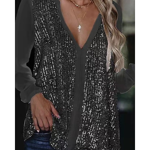 Capodanno Per donna Blusa Top con paillettes Semplice Elegante Manica Lunga Scollo a V Top Regolari Quotidiano Ferie Uscire Paillettes Blu Argento Nero Vino Rosa Estate Autunno