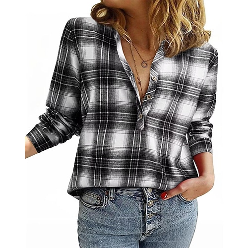 Per donna Blusa Top Eleganti Plaid Semplice Elegante Vintage Classico Manica Lunga Scollo a V Top Regolari Lavoro Quotidiano Ferie Bottoni Verde primavera Nero Rosso Blu marino Blu Autunno Inverno