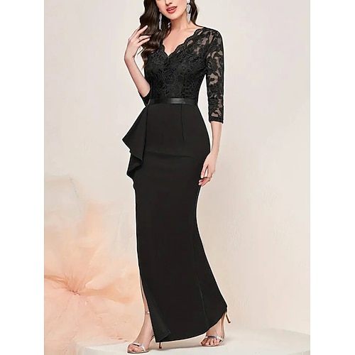 Per donna Nero Blu marino scuro Estate Primavera Autunno Abito maxi Tubino Formale Formale Feste Vestibilità regolare Semplice Scollo a V