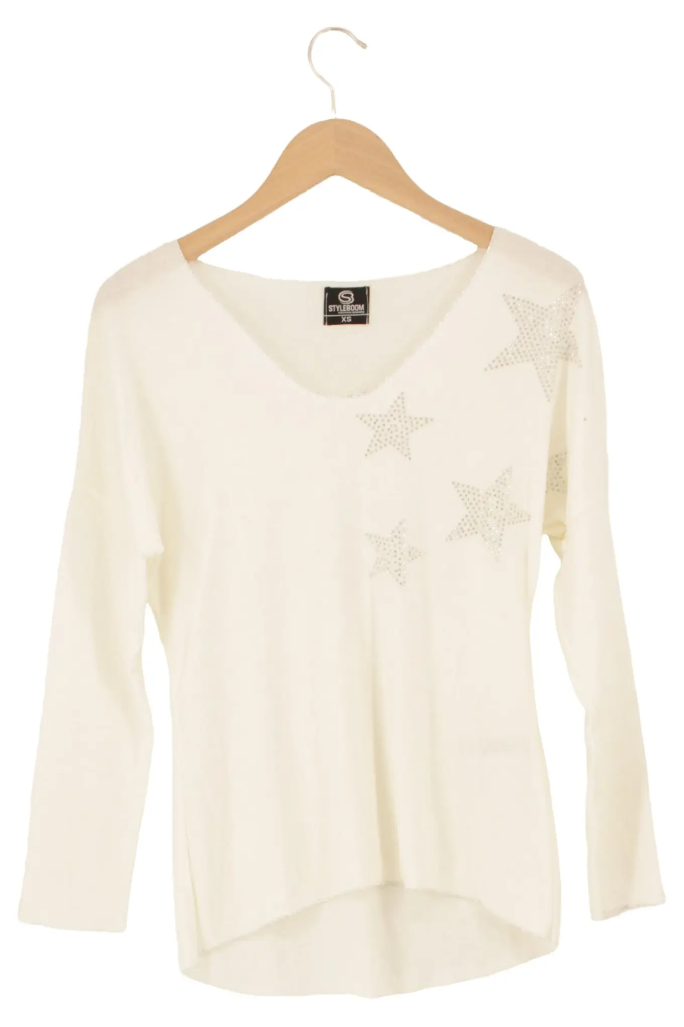 STYLEBOOM Damen Pullover XS Creme Sterne Casual Look
