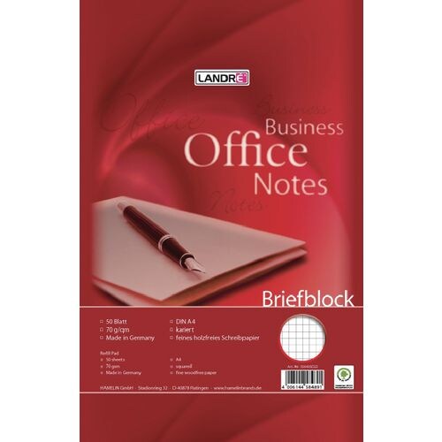LANDRÉ Briefblock Business Rot Kariert Nicht perforiert DIN A4 20,8 x 5 x 30,2 cm 50 Blatt