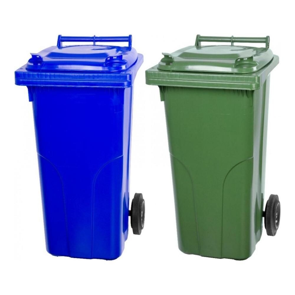 Mega Deal 2x PROREGAL 2-Rad-Mülltonne, 120 Liter, HDPE Kunststoff, Blau & Grün, Mülltonne, Müllgroßbehälter, Mülleimer, Abfalltonne, Müllbehälter