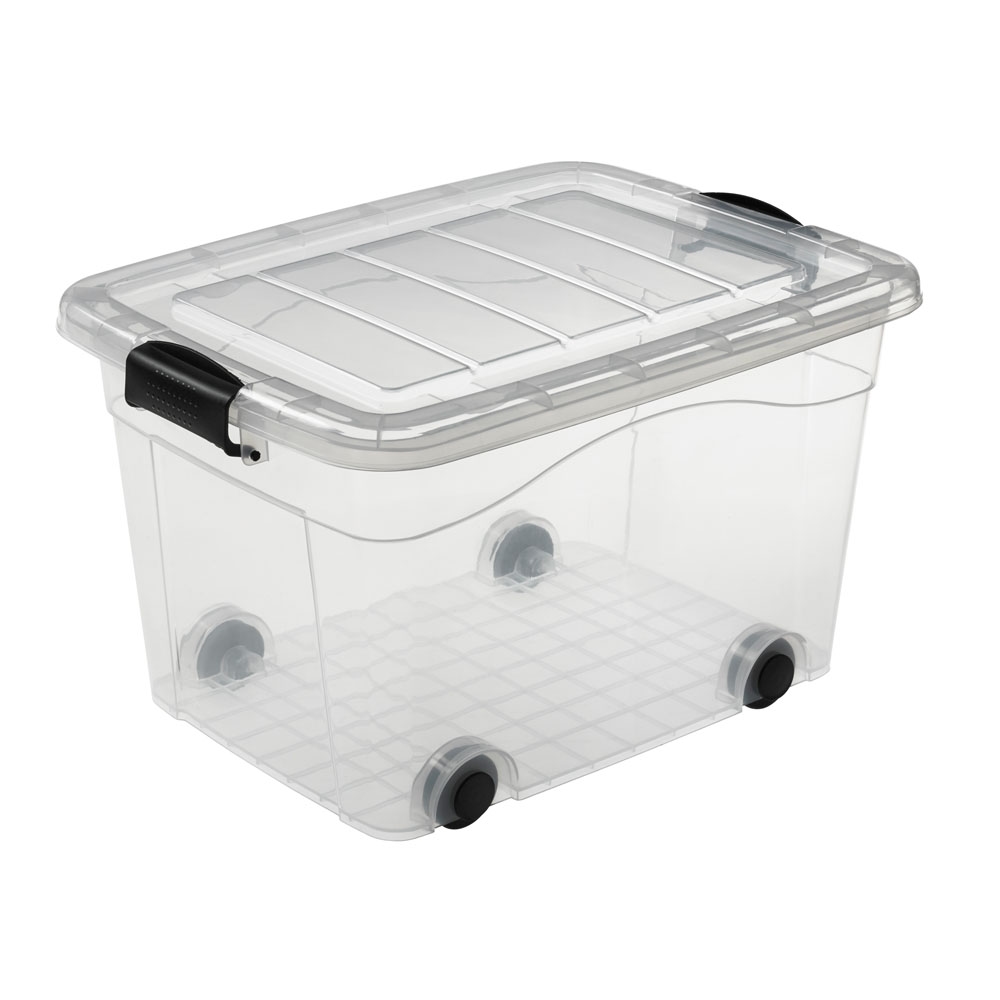 Aufbewahrungsbox transparent 40 Liter mit Deckel und Klickverschluss 530 x 400 x 320 mm inkl. Rollen